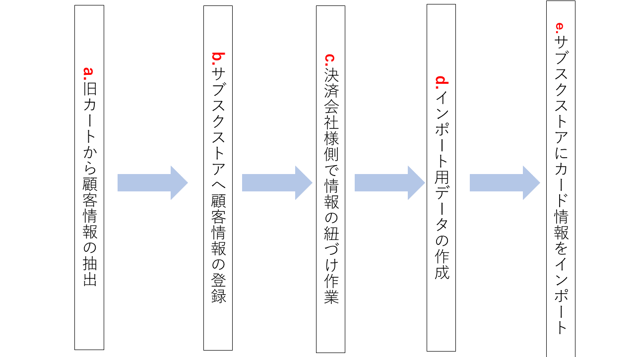 クレジットカード情報を移行する際の一連の流れは下の画像の通りとなります。