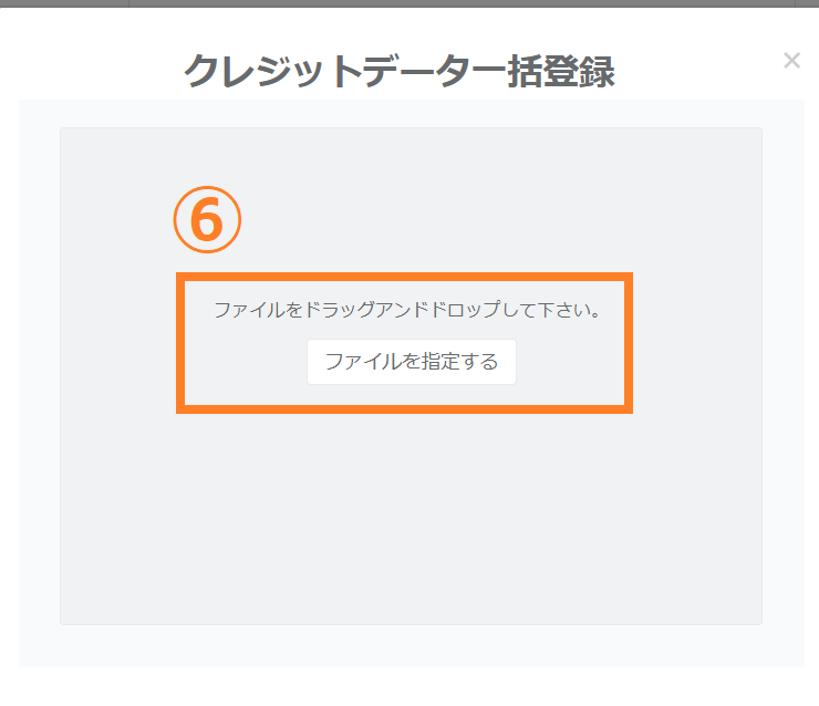 ⑥ファイルをドラッグ&ドロップで指定していただくか、「ファイルを指定する」ボタンからインポート用ファイルを指定してください。