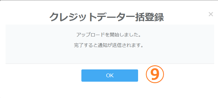 ⑨データアップロードが開始されると左記のようなメッセージが表示されます。