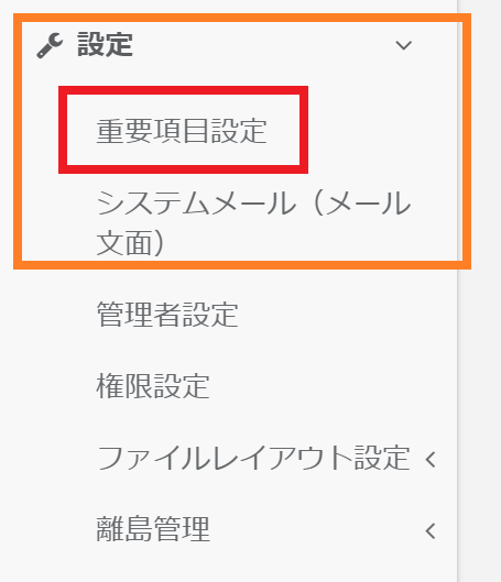 ①画面左のメニューバーより > 【設定】 > 【重要項目設定】をクリックしてください。