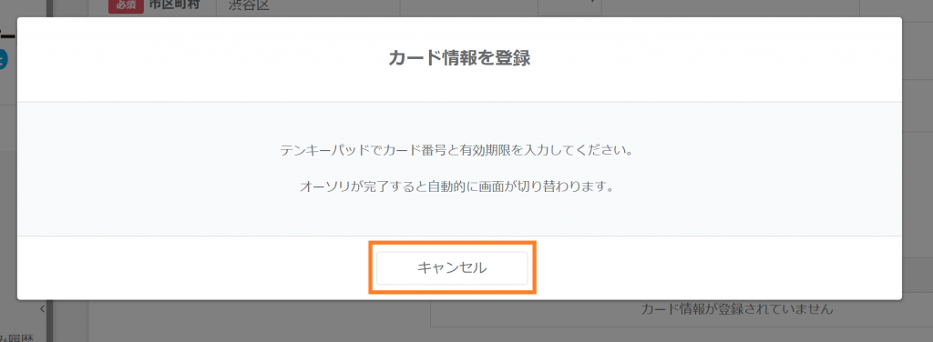 入力を辞めたい場合は「キャンセル」ボタンをクリックください。グレーになっている箇所をクリックいただいてもポップアップは閉じませんので、ご注意ください。