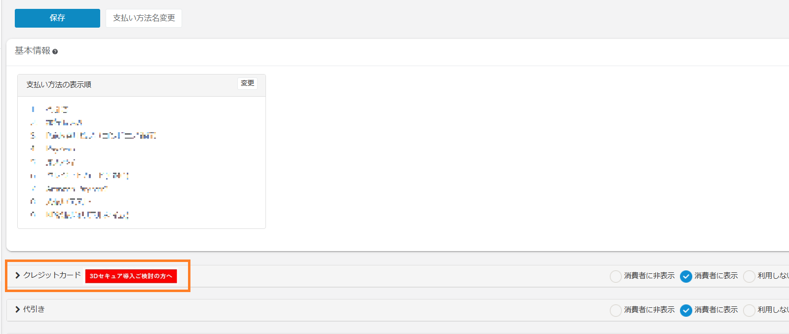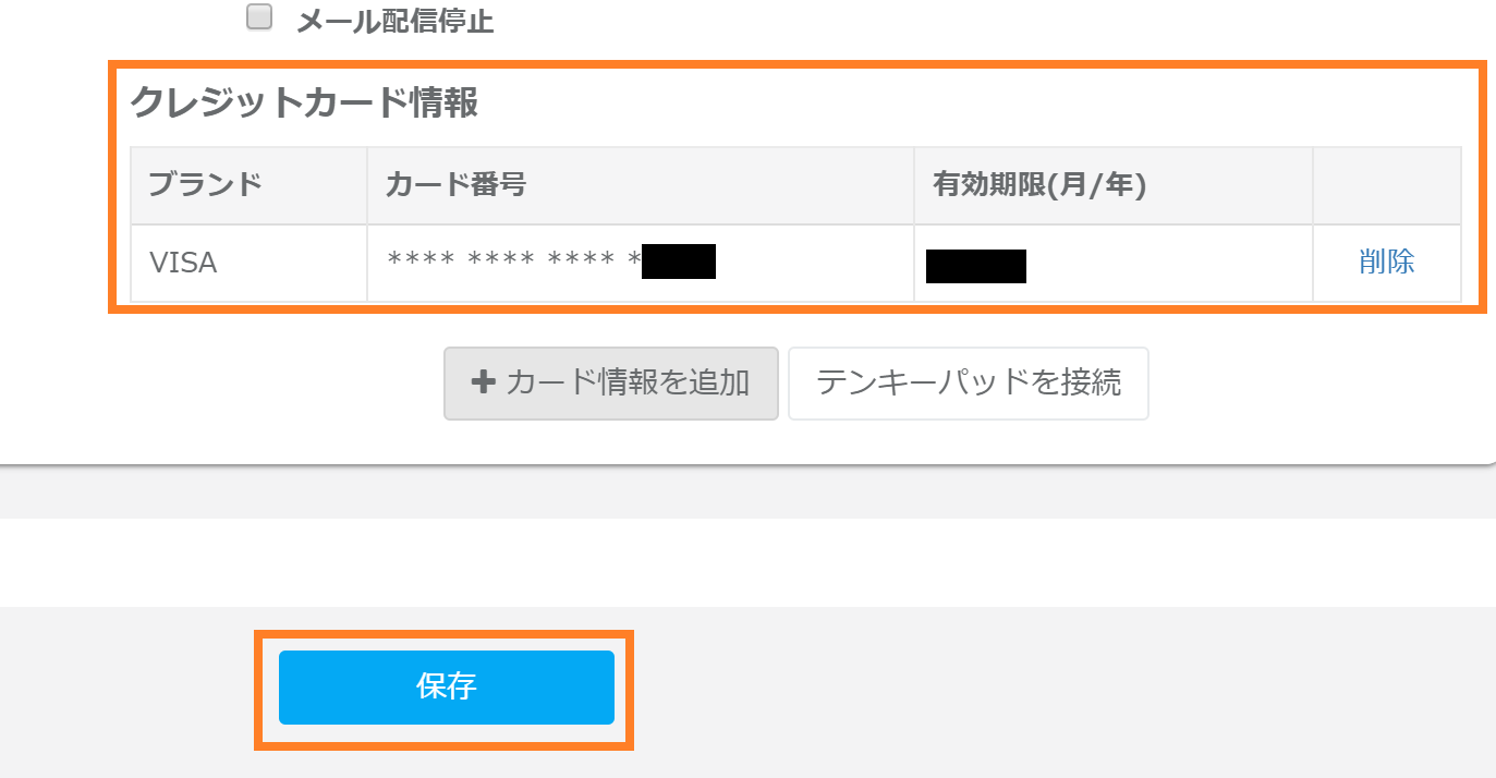 ⑦クレジットカード情報が登録されました。情報を確定する場合は「保存」ボタンをクリックください。