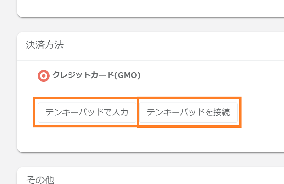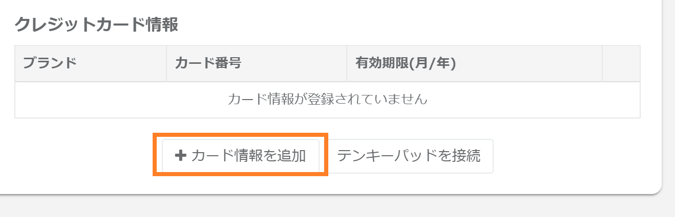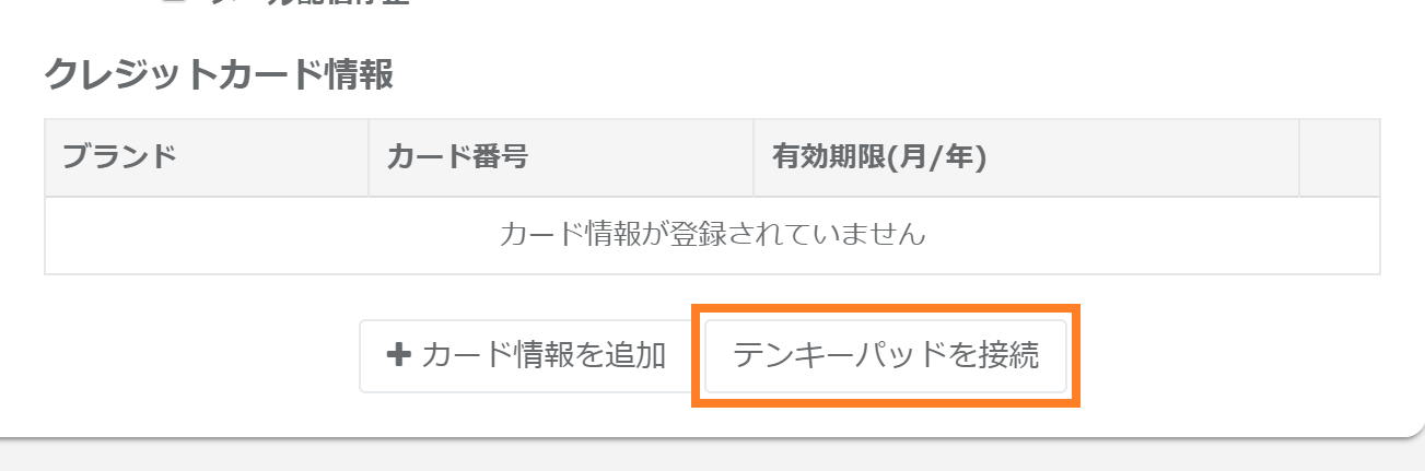 テンキーからクレジットカード情報を登録する場合は、「テンキーパッドを接続」ボタンをクリックください。