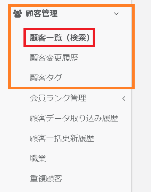 ①画面左のメニューバーより > 【顧客管理】 > 【顧客一覧(検索)】をクリックしてください。