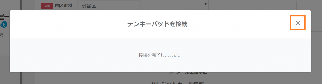 クレジットカード情報の入力がテンキーから完了すると、左記のポップアップが自動で閉じられます。