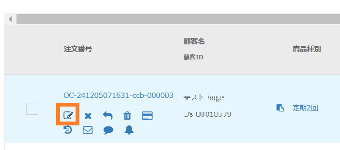 ②対象の定期注文を検索で絞りこんでいただき、「編集」リンクをクリックください。
