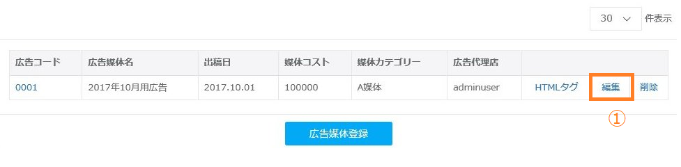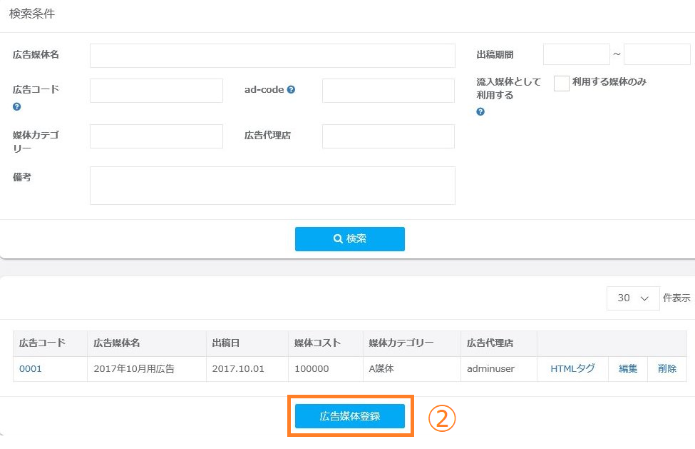 ②「広告媒体登録」ボタンをクリックしてください。