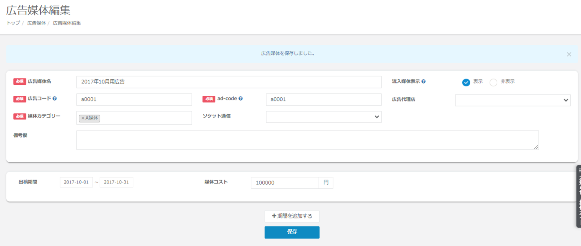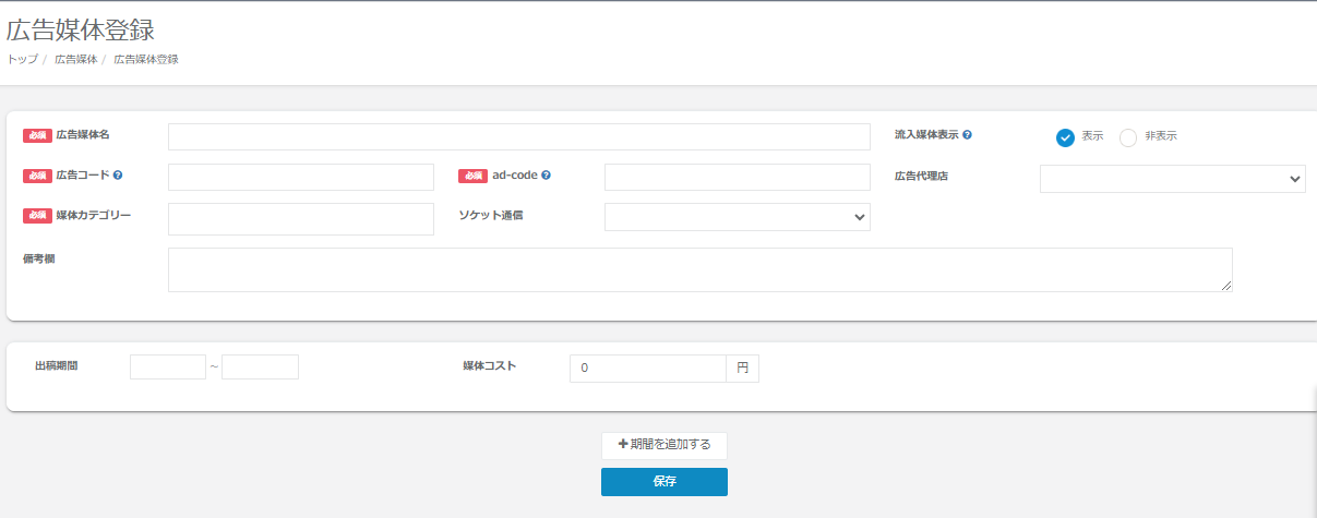 ③各媒体情報を入力していただきましたら「保存」ボタンをクリックしてください。